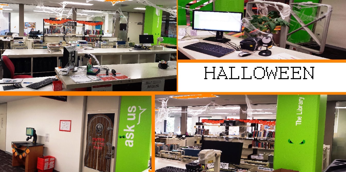 This year Wagga Charles Sturt University Library staff got into some Halloween decorating spirit! A BIG thanks to everyone who got involved putting up decorations, as well as those who were kind enough to buy some of the props (including catching some spiders).