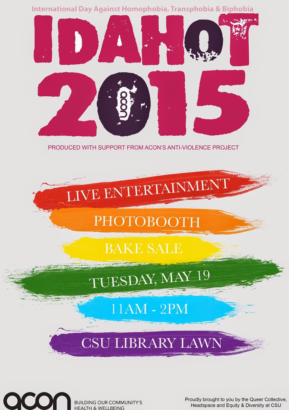 On May 19th come to the CSU Bathurst library lawn between 11 and 2 and help raise money for the Headspace LGBTI Social group by participating in the photo booth, bake sale, and live entertainment.