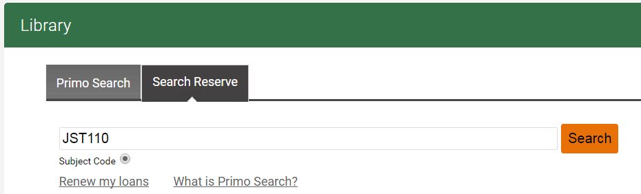 - readings made available via Primo Search – search with subject code, author or title keyword.