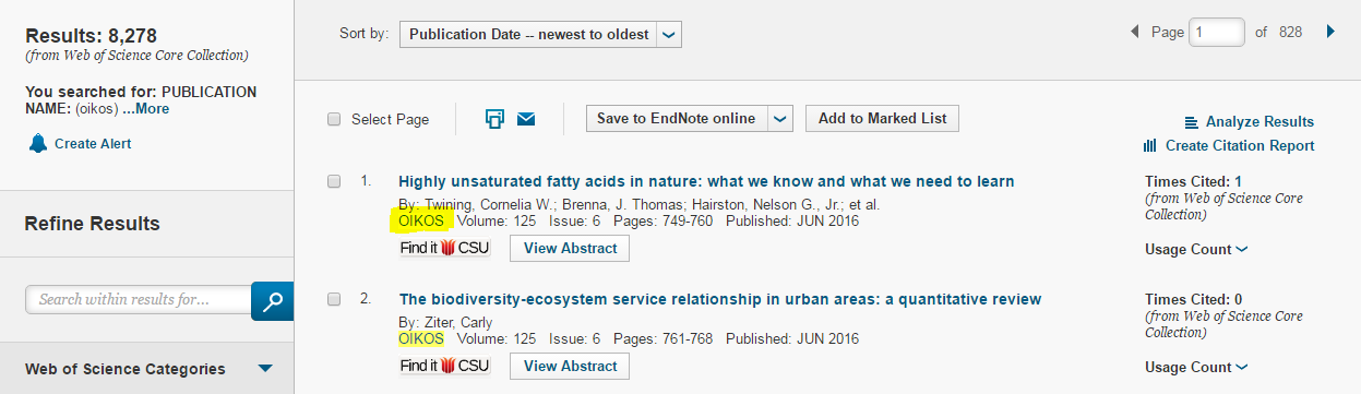 In WoS, change the search criteria from ‘Topic’ to ‘Publication Name’ (you can also search for a particular article if you prefer):