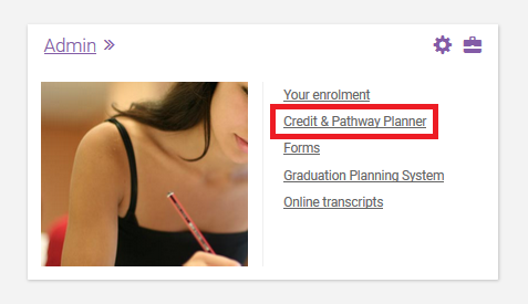 You will find the Credit and Pathways Planner in the Admin widget on the Student Portal