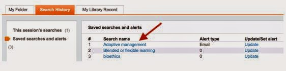 - Click on the ‘Search name’, e.g. Blended or flexible learning, to run that Saved Search
