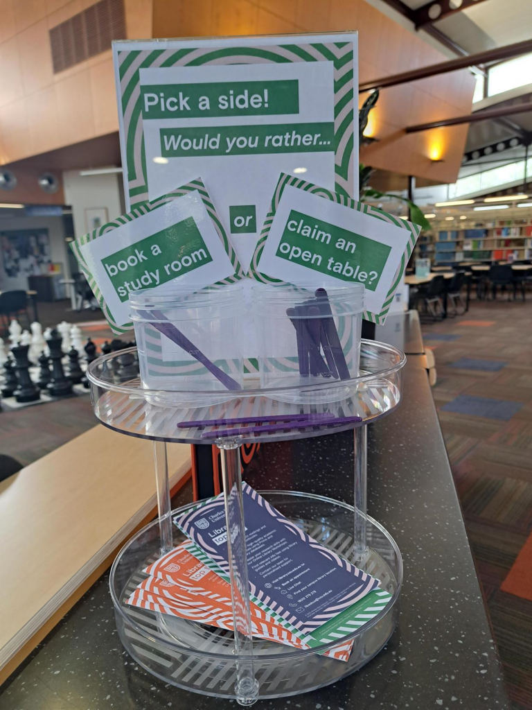 The Albury team ran a “This or That” activity as a fun way to help you think about how you like to study. The best part? There’s no wrong choice – the Library has both options covered!