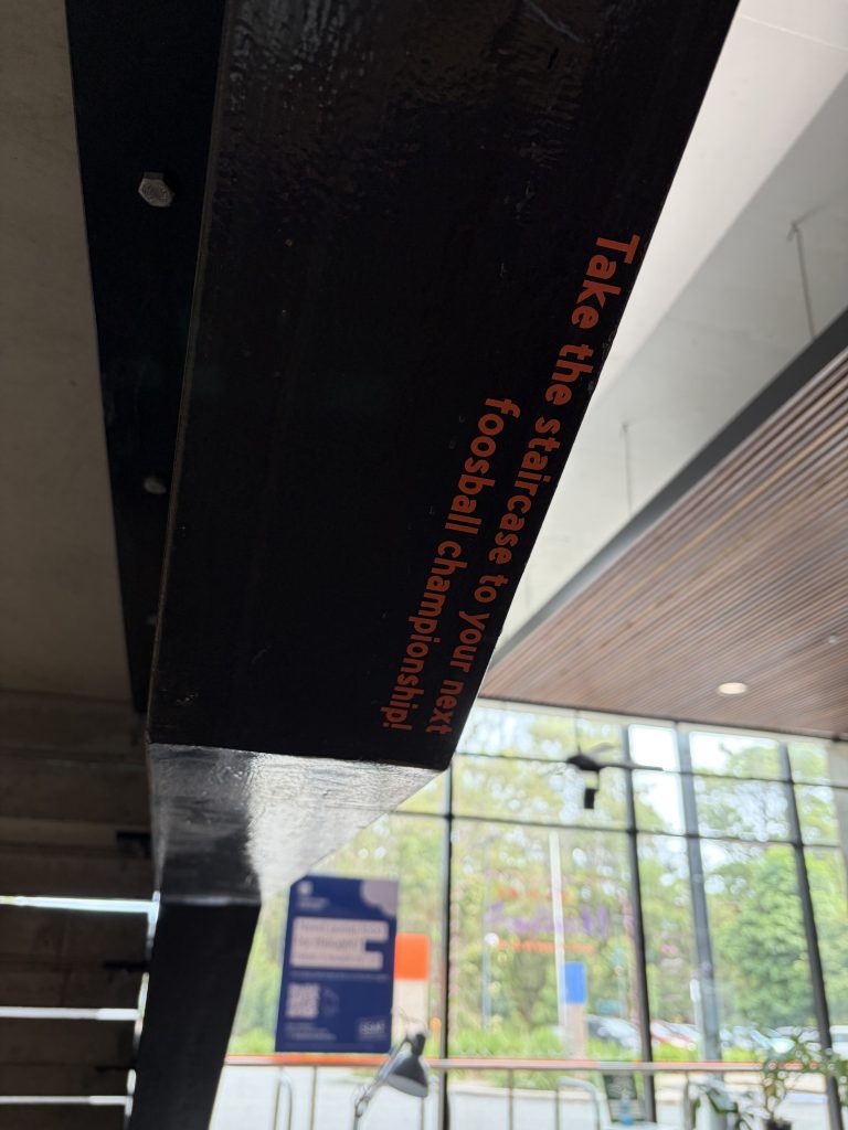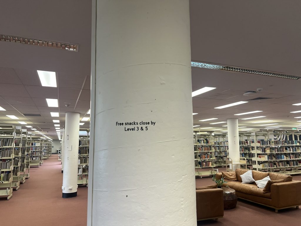 You may have spotted some subtle, playful signs tucked around the Library. They’re designed to be discovered naturally — little nudges pointing you toward game zones, study spaces or services you might not have realised were there. Did you spot any?